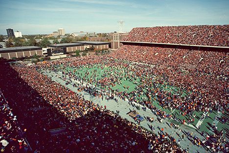 On Oct. 29, 1983, a record crowd of 76,127 at Memorial Stadium saw Illinois beat Michigan, 16-6. Jack Trudeau threw for 271 yards and two touchdowns. It was UI's first home-field victory over the Wolverines since 1957.