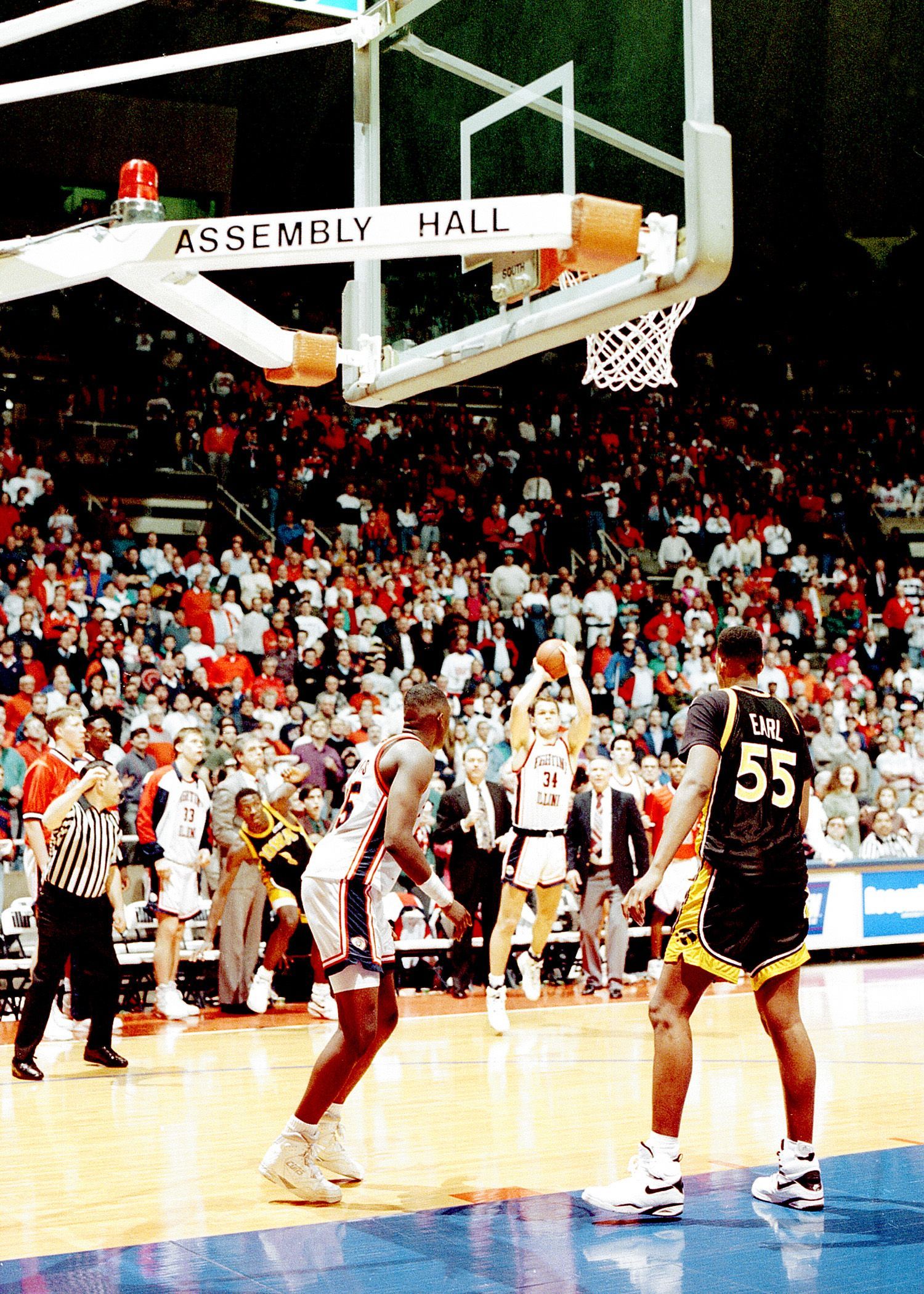 Feb. 4, 1993: Illini basketball defeated No. 9 Iowa at the Assembly Hall, 78-77, on a desperation 23-foot 3-pointer by Andy Kaufmann at the buzzer.