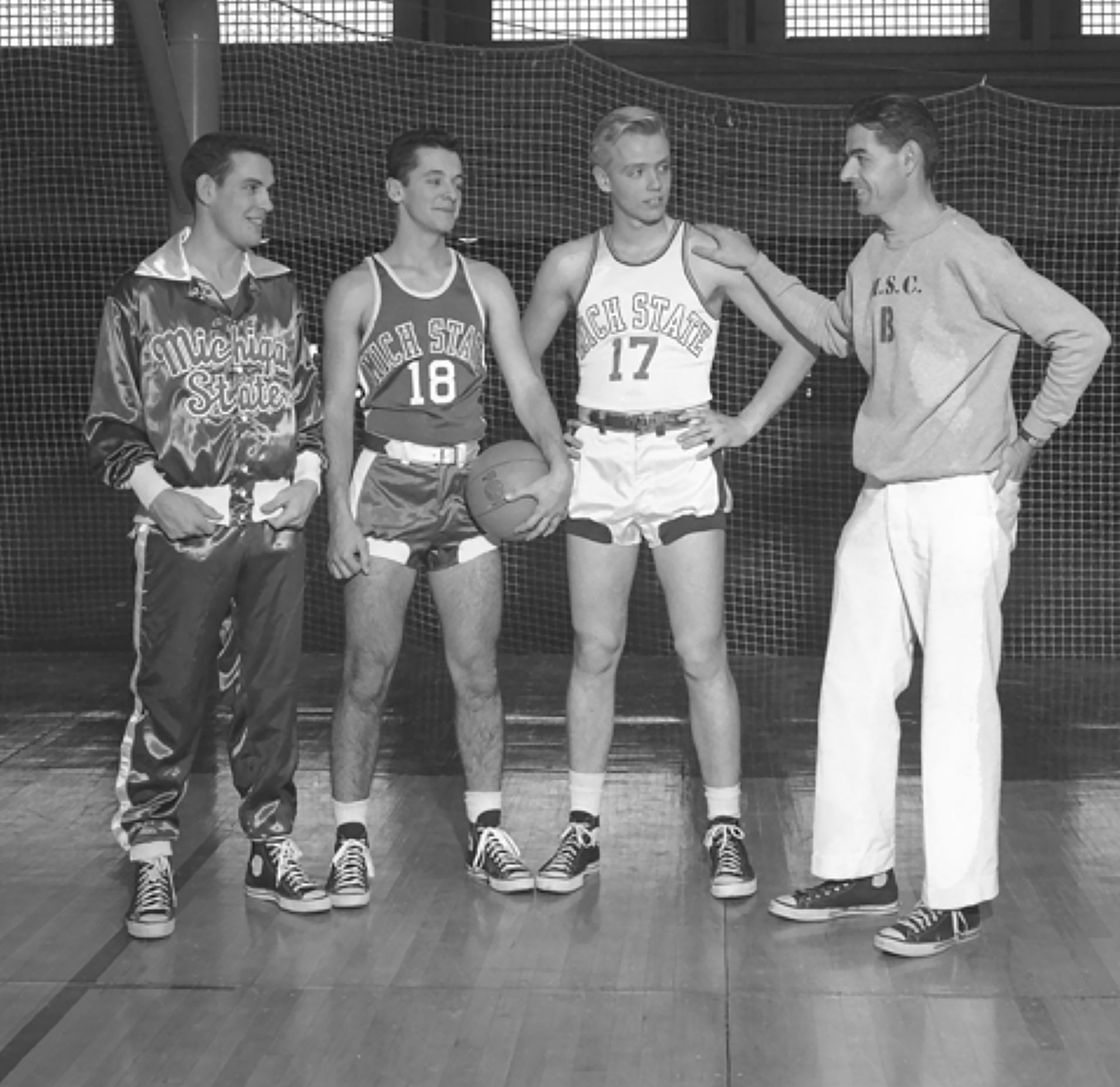 SPARTAN HISTORY - On Apr. 18, 1950, Michigan State ended a six-week search by naming Pete Newell as its basketball program's head coach. From 1950-51 through '53-54, his four Spartan teams had a 45-42 record. Newell returned to the West Coast in 1954 when he was hired as head coach at the University of California. He coached the 1960 U.S. men's Olympic basketball team to a gold medal, leading a talented squad that featured future Hall of Famers Walt Bellamy, Oscar Robertson, Jerry West, and Jerry Lucas.