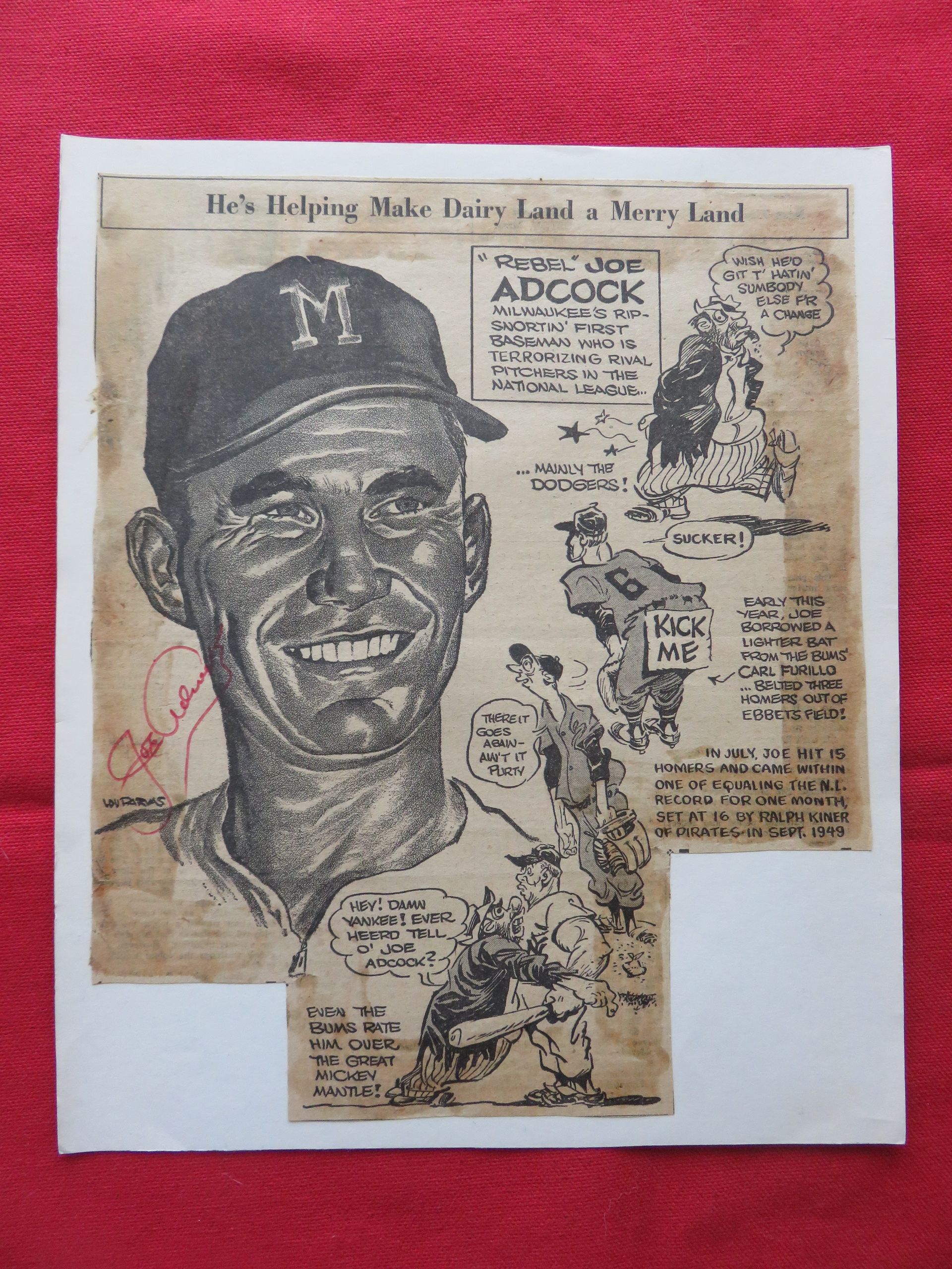 Joe Adcock autographed clipping