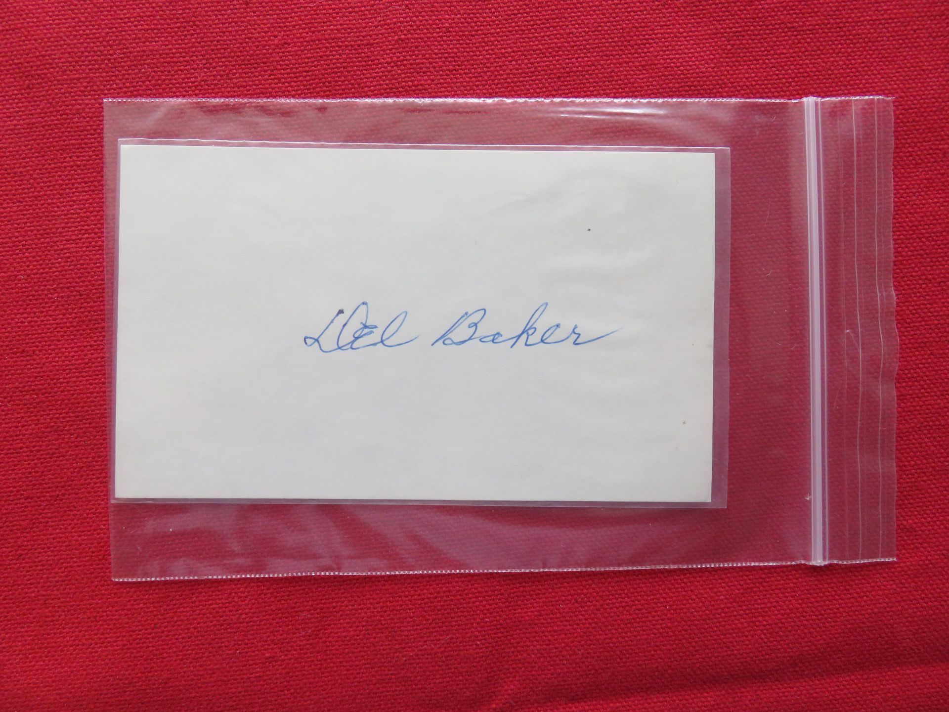 Del Baker autographed 3x5 card