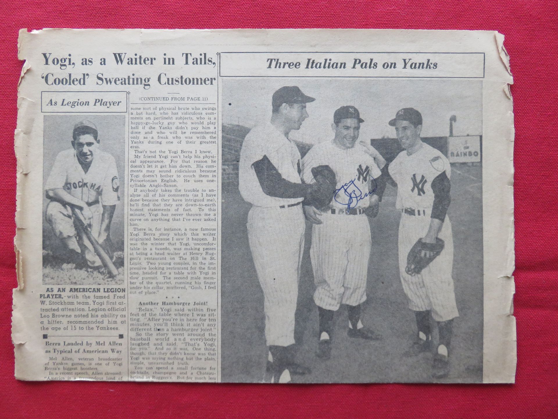 HALL OF FAMER Yogi Berra autographed clipping