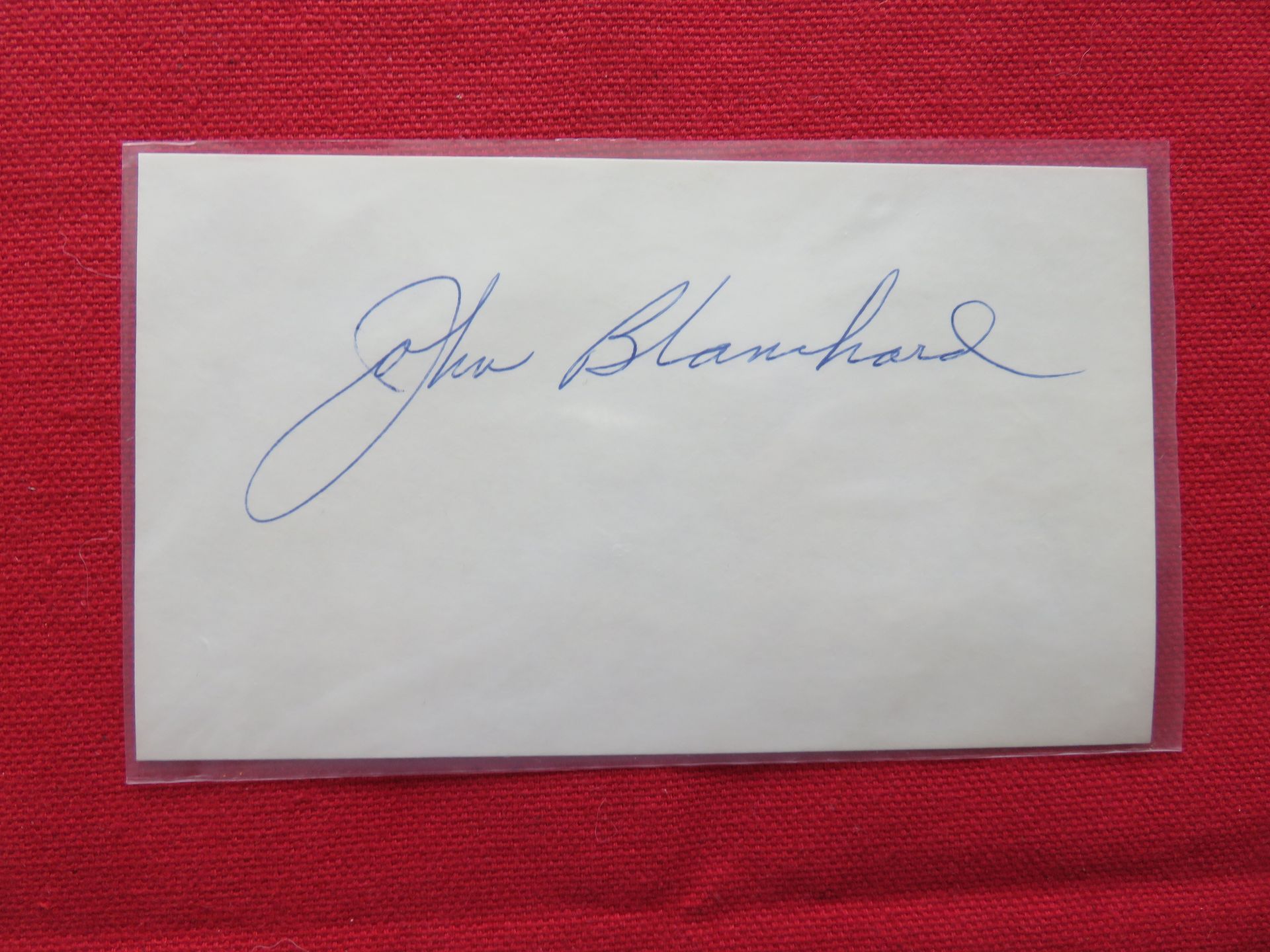 John Blanchard autographed 3x5 card