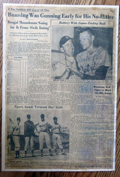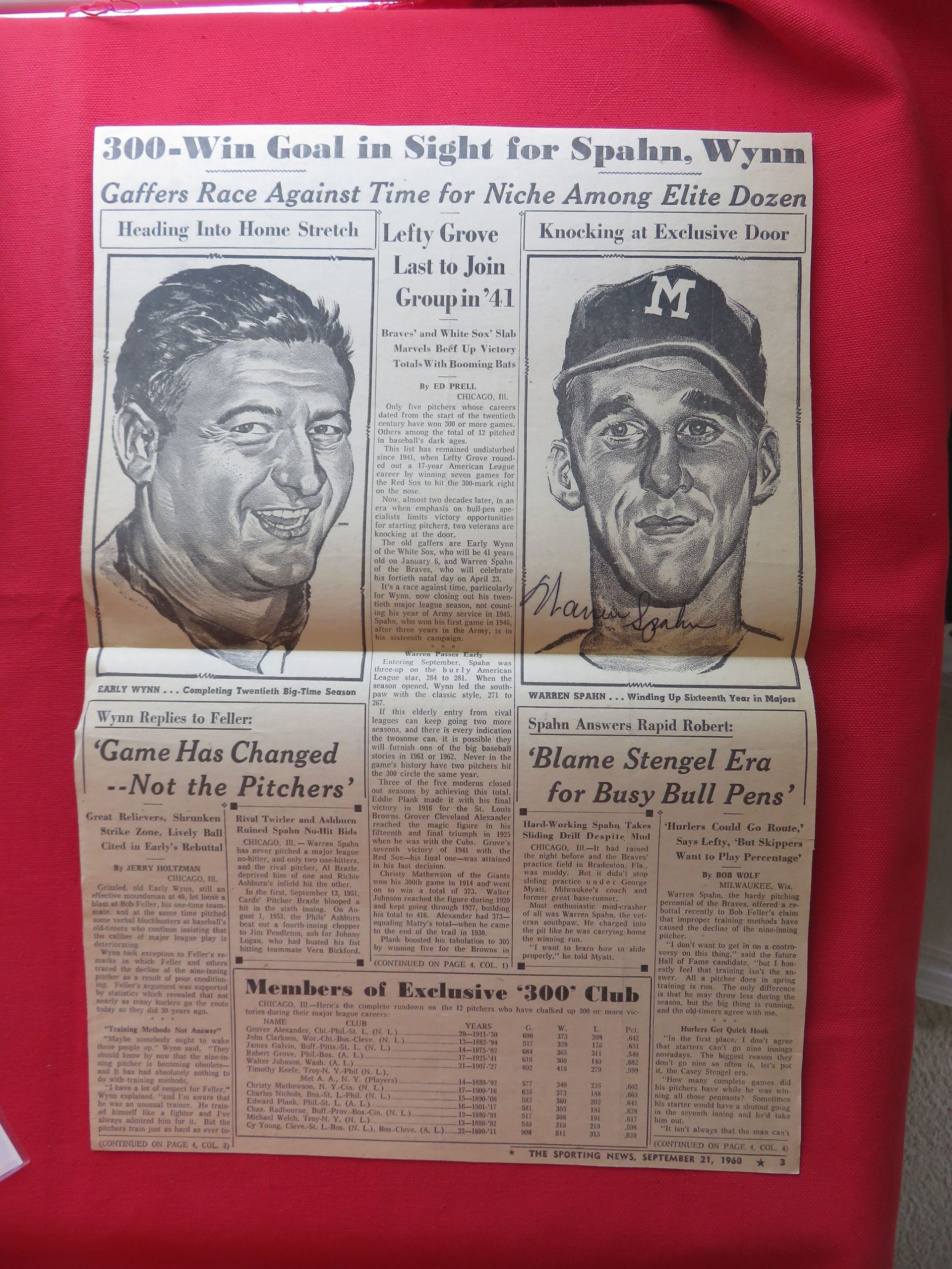 Signed "Warren Spahn" on a 1950s Sporting News clipping