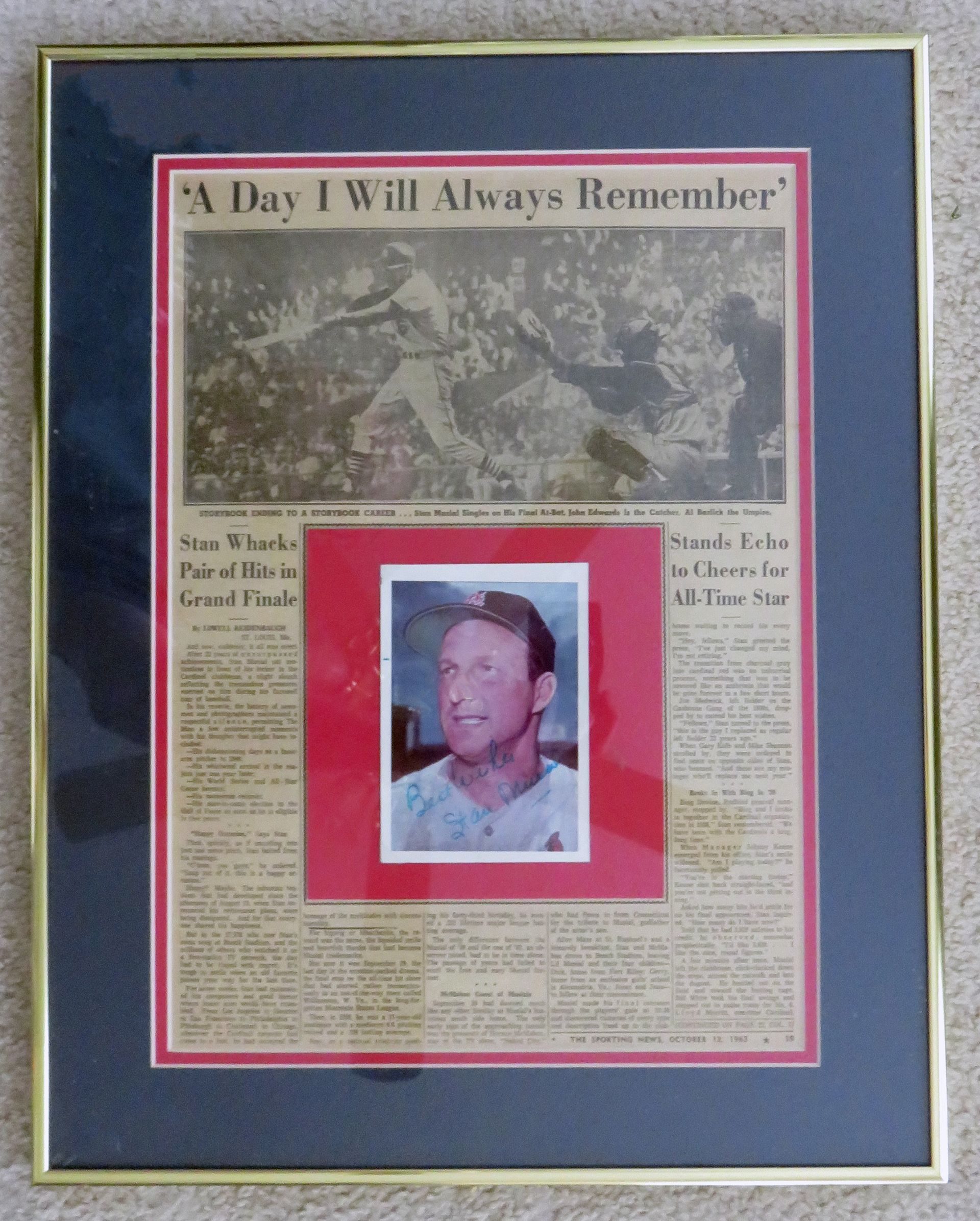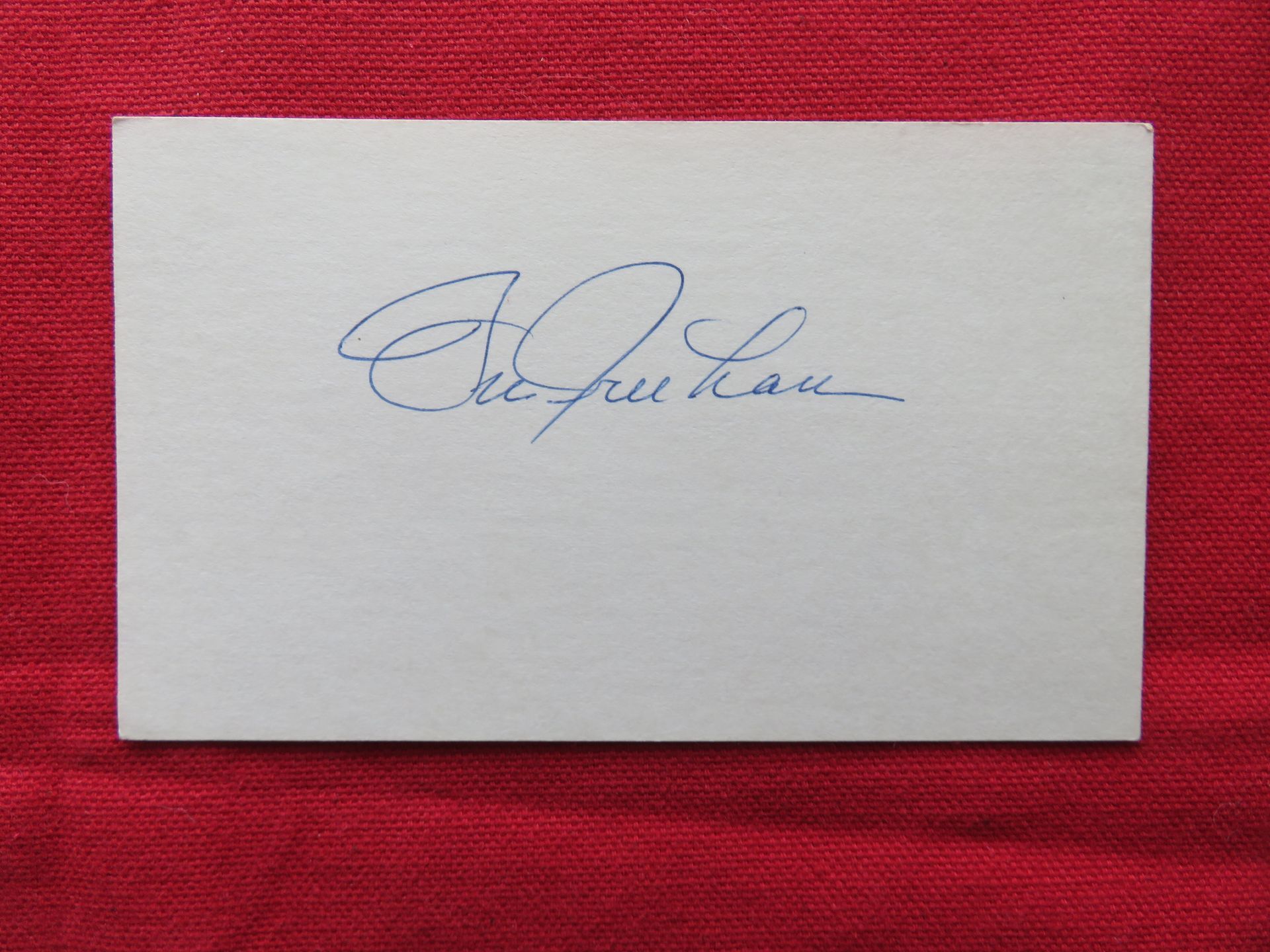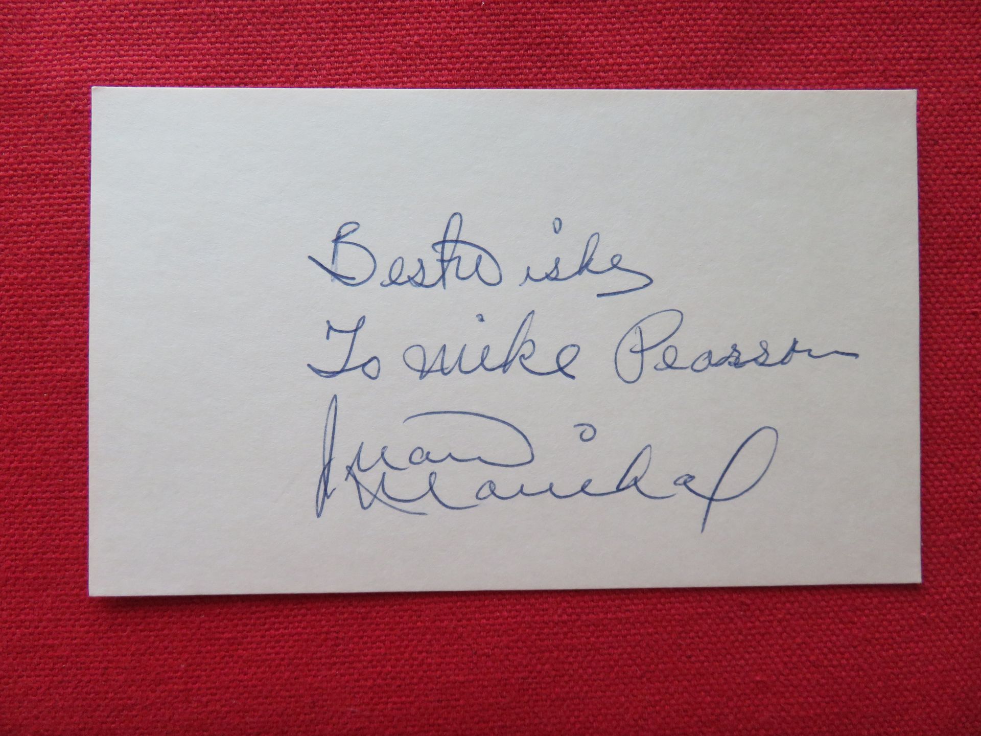 SELLER'S NOTE: the great majority of autographed 3x5's, photos and clippings that I am selling were obtained by mail (via baseball address pioneer Jack Smalling's list) more than 50 years ago. I believe that they are authentic.