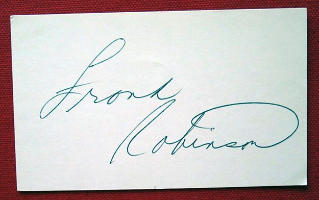 HALL OF FAMER Frank Robinson autographed 3x5 AND H.O.F. Plaque Card
