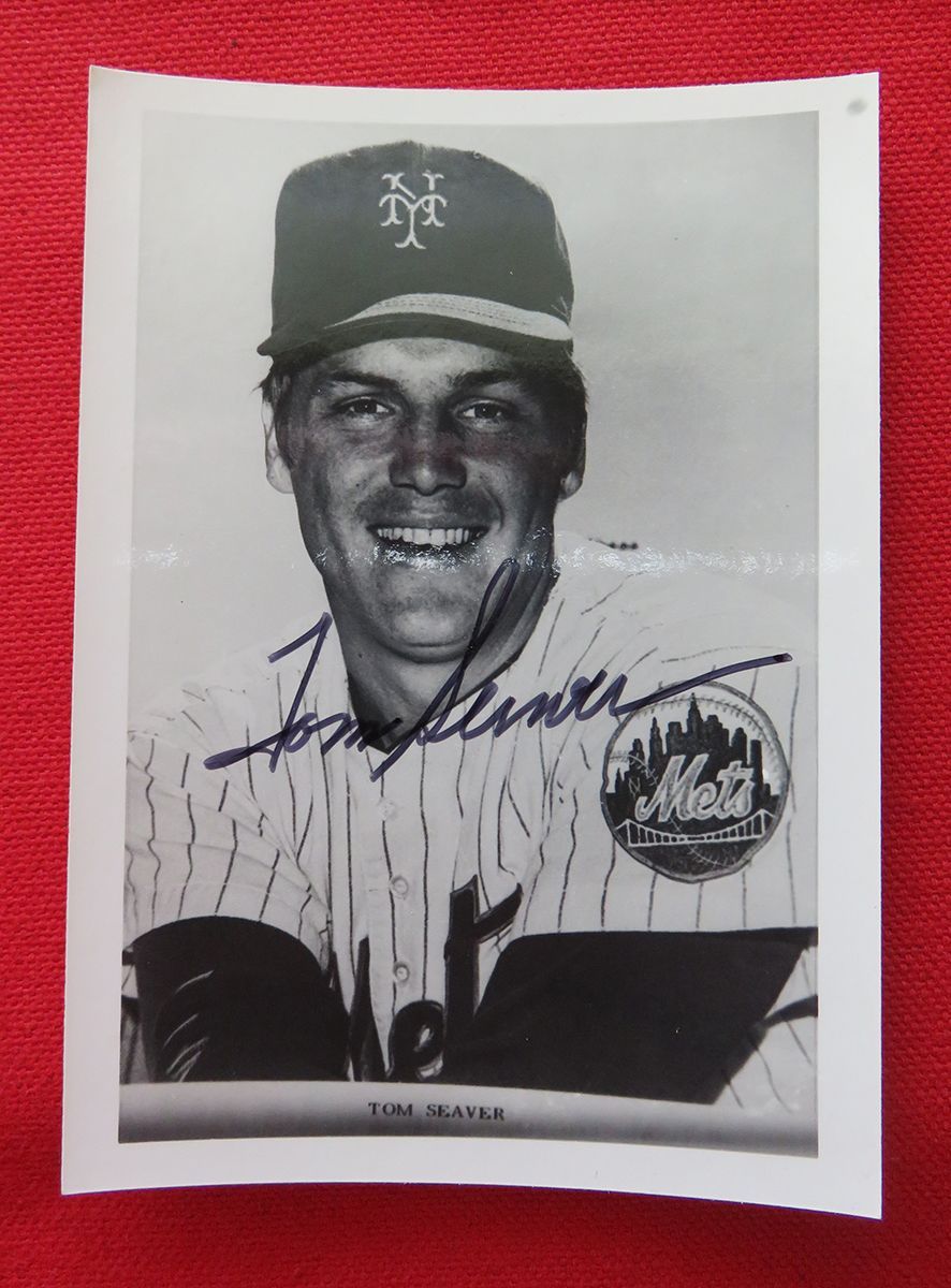 HALL OF FAMER Tom Seaver autographed photo AND HOF plaque card