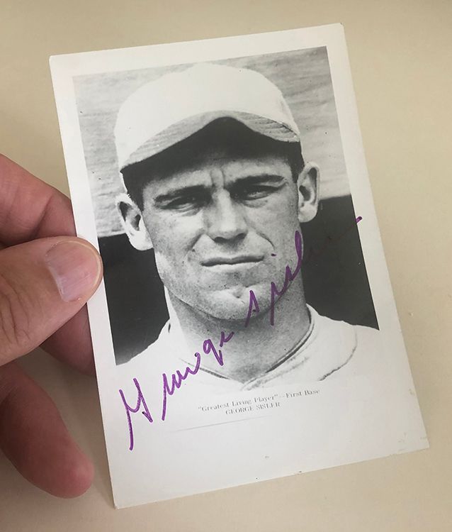 We have seen George Sisler autographed photos priced near $1,000. Our item is priced far less than that.