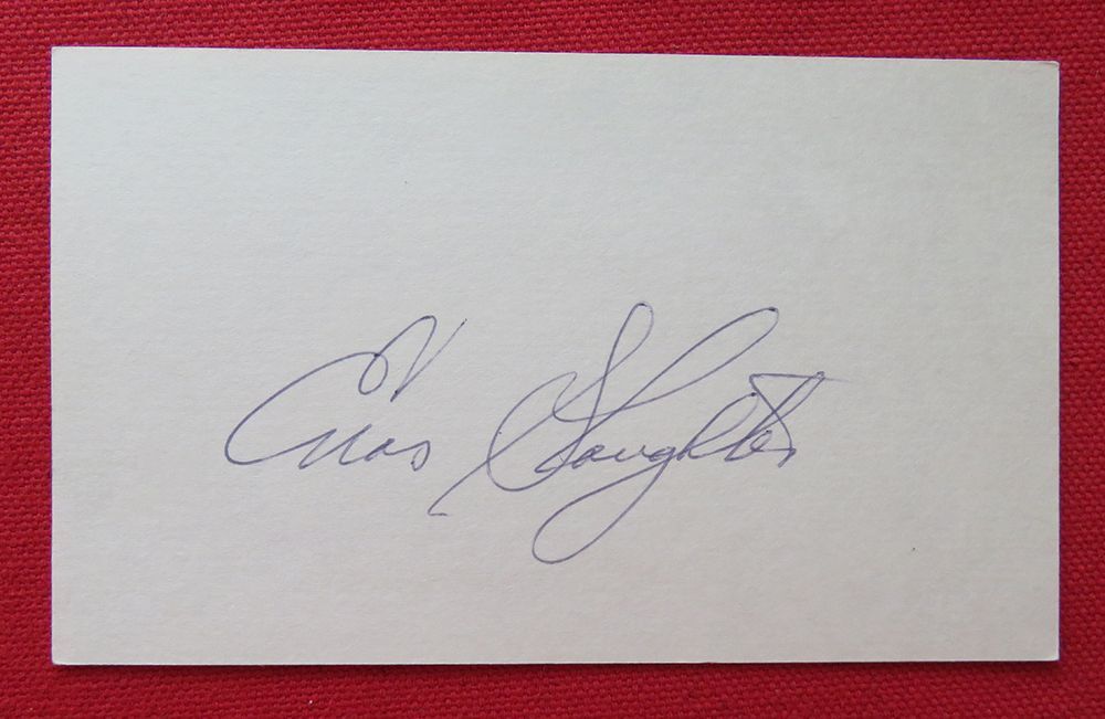 HALL OF FAMER Enos Slaughter autographed 3x5 card AND HOF plaque card
