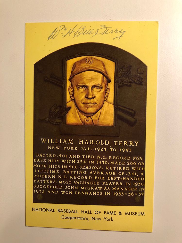 HALL OF FAMER Bill Terry signed HOF plaque card