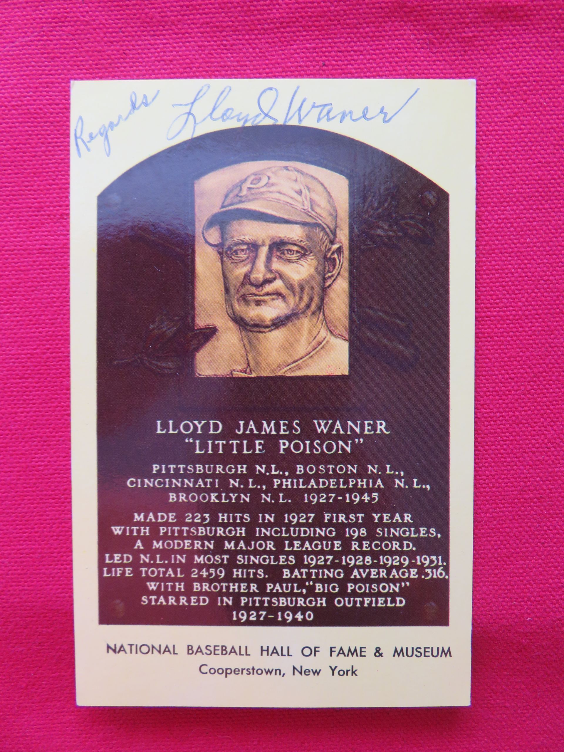 Autograph signed "Regards Lloyd Waner"