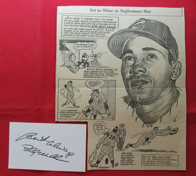 HALL OF FAMER Billy Williams autographed 3x5 card AND clipping