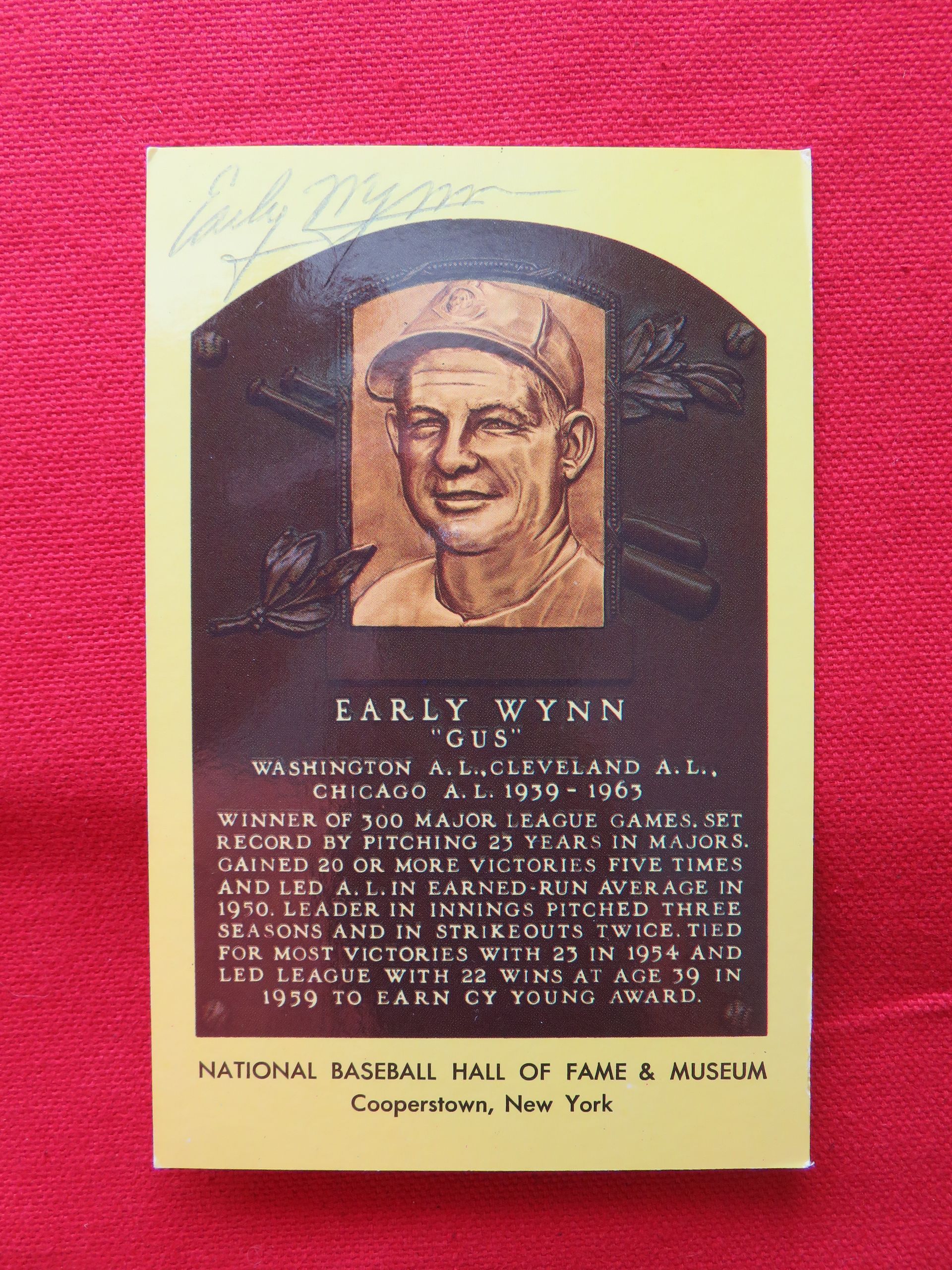 HALL OF FAMER Early Wynn autograph on HOF plaque card