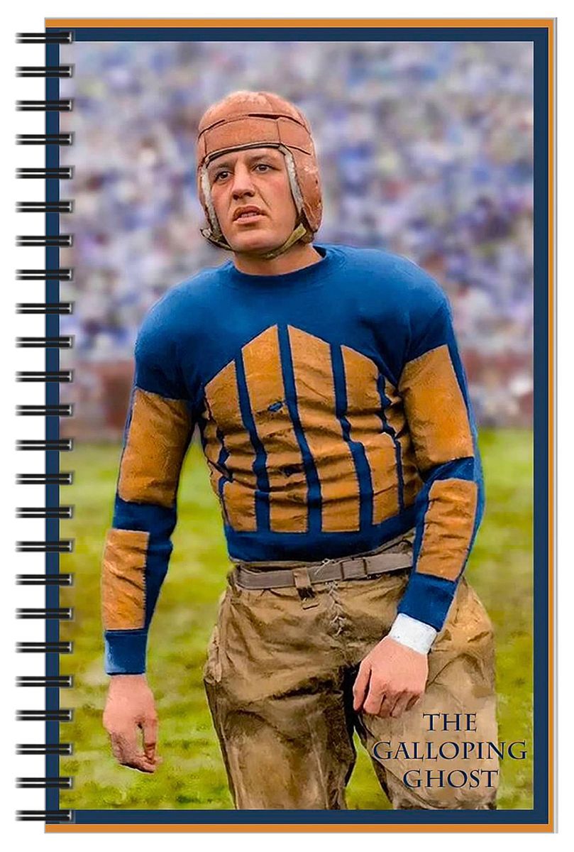 For your children or for your own use, this 5" x 8" Red Grange-themed notebook will be a favorite for school work, for journaling, for making your shopping lists, or for use with special projects. The 150 lined pages feature a black coil binding.
