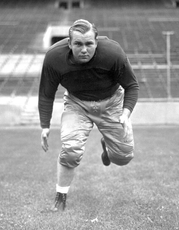 ANTHONY JAMES BUTKOVICH: A star running back for Coach Ray Eliot in 1941 and ’42, he was transferred for military training to Purdue University. In 1943, he led the Boilermakers and the nation in rushing in with 833 yards, scoring a record 16 touchdowns. Butkovich was a first-round selection in the 1944 National Football League Draft, but instead enlisted in the U.S. Marines. As a Corporal with the 6th Marine Division, 29th Regiment, he was killed in action on Apr. 18, 1945 at Okinawa. He is buried at St. Mary’s Cemetery in Canton, Ill.