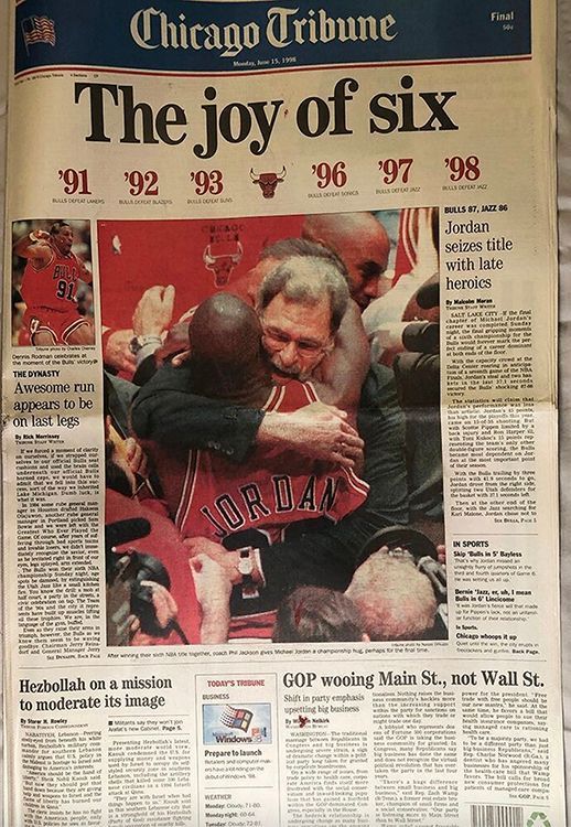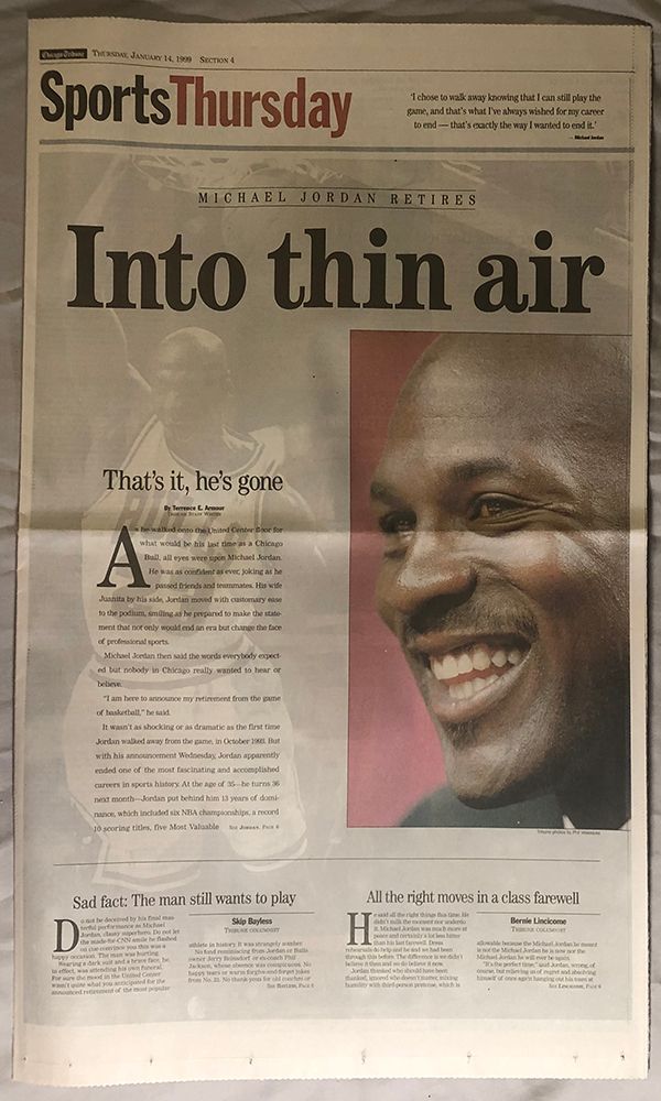 This is the Jan. 12, 1999 edition of the Chicago Tribune, covering the retirement of Bulls superstar Michael Jordan.