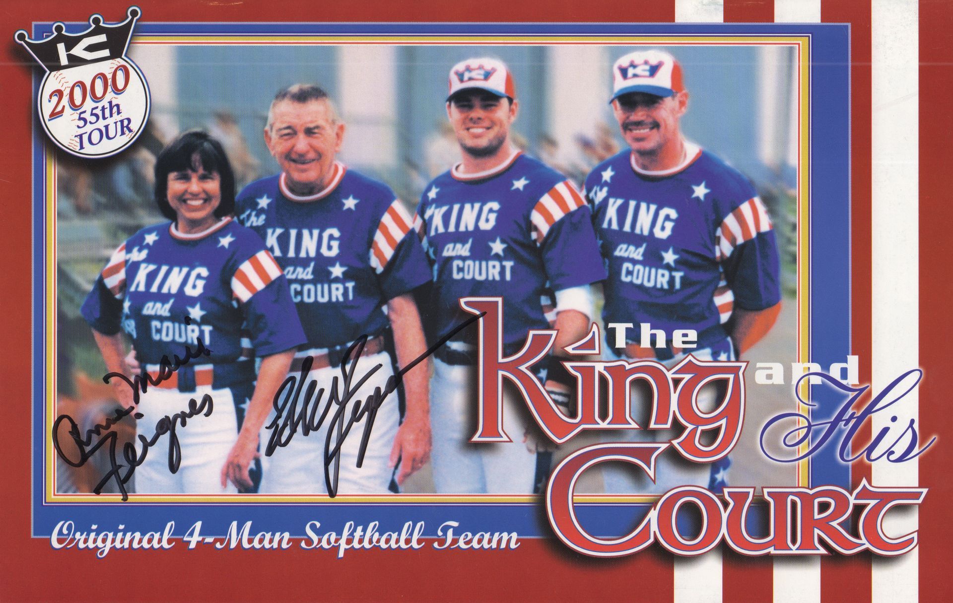 Eddie Feighner (born Mar. 25, 1925 – died Feb. 9, 2007) first assembled his four-man touring team, known as "The King and His Court". The team, which fielded only a pitcher (Feigner), catcher, first baseman, and shortstop, was known for performing tricks that entertained the audience. The Court would play over10,000 softball games in a hundred countries from the late 1940s to the beginning of the 21st century and achieved a reputation and fame similar to that of the Harlem Globetrotters. Feigner's meticulous records claim 9,743 victories, 141,517 strikeouts, 930 no-hitters and 238 perfect games.