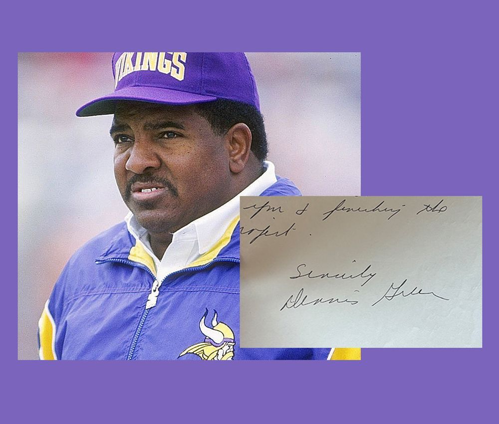 Dennis Green (born Feb. 17, 1949 – died July 22, 2016) was the second African American head coach in modern NFL history. During his career, Green coached the Minnesota Vikings from 1992-2001 and the Arizona Cardinals from 2004-06. He coached the Vikings to eight playoff appearances in nine years, despite having seven different starting quarterbacks in those postseasons. He was posthumously inducted into the Minnesota Vikings Ring of Honor in 2018.