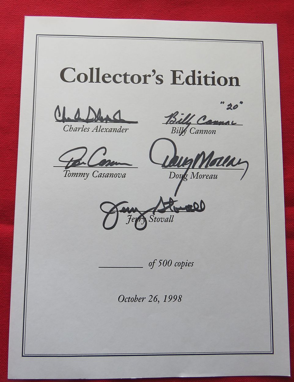 Autographs of LSU football's Billy Cannon, Charles Alexander, Tommy Casanova, Doug Moreau & Jerry Stovall