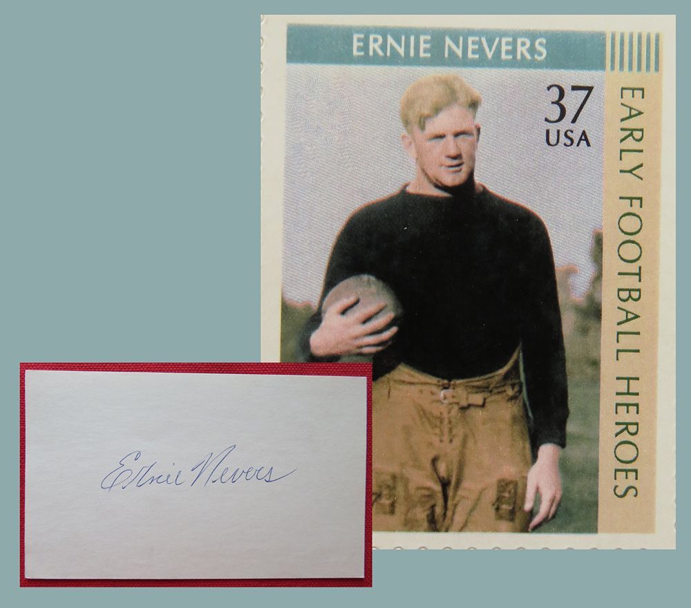 Signed "Ernie Nevers" (please note that the postage stamp of Ernie Nevers is also included in this offer)