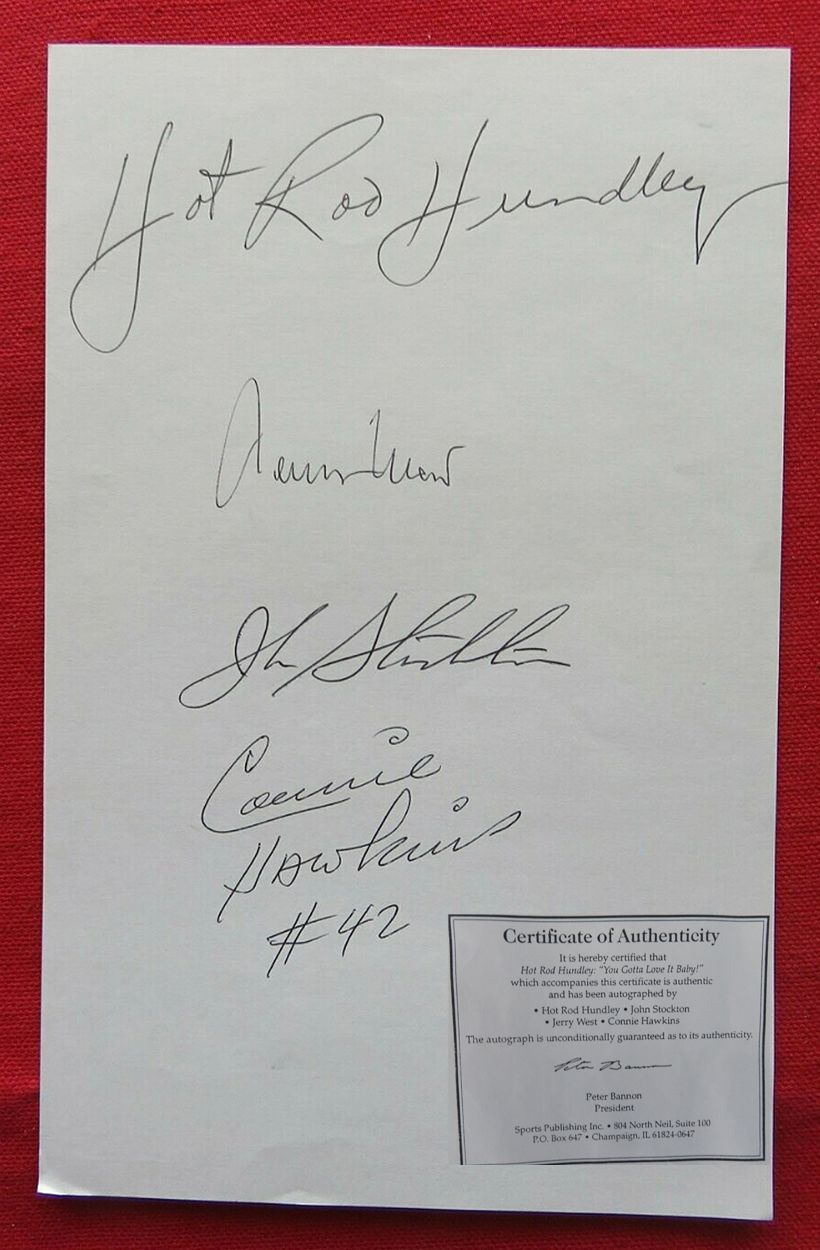 Jerry West, John Stockton, Rod Hundley, Connie Hawkins autographs (with Cert. of Authenticity)