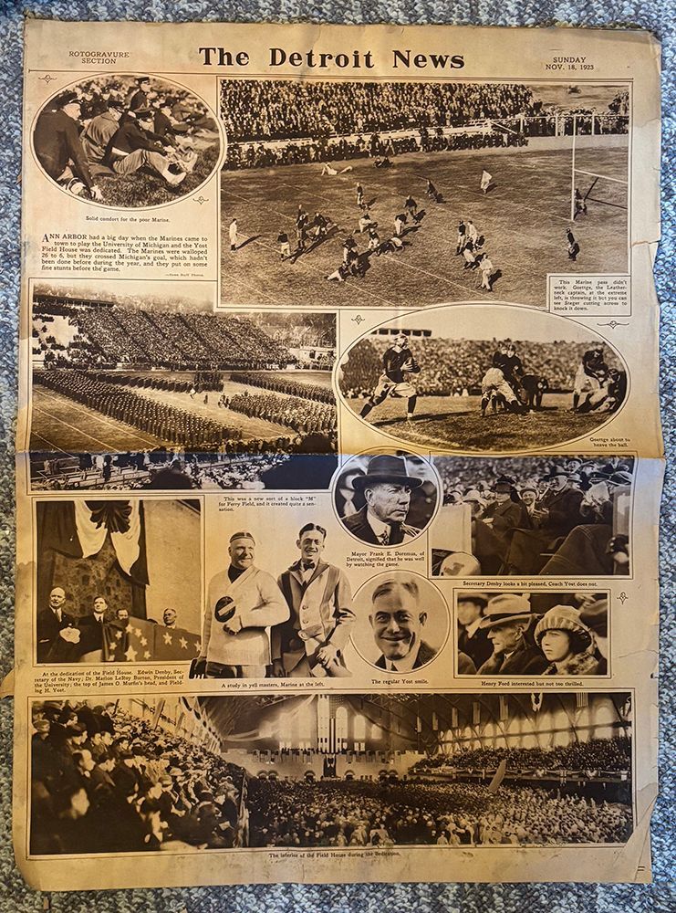 This is the Nov. 18, 1923, "Rotogravure Section" of the Detroit News, reporting on the dedication of Yost Fieldhouse.